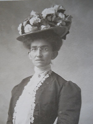 Title (ebay affiliate link): Antique RPPC Real Photo Postcard~Prim Lady~Large Floral Hat~Spectacles~Velox