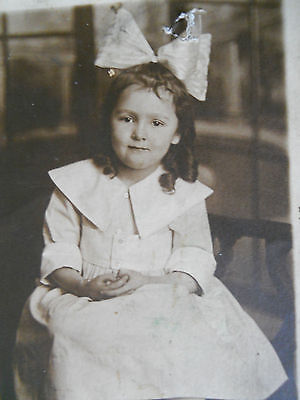Antique RPPC Real Photo Postcard~Beautiful Little Girl Jane Paulette~Big Bow~AZO