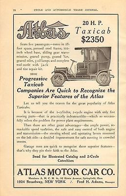 1909 ATLAS TAXI CAB CAR AD- ORIG VINT PRINT AD