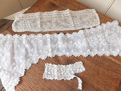 3 fragments fine whitework embroidery Antique 19thC Victorian Dolls Repairs