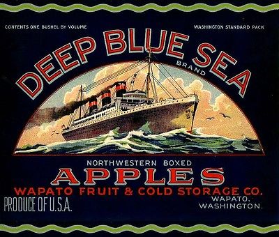 Title (ebay affiliate link): 20 Authentic Vintage - DEEP BLUE SEA apple Orchard labels--GREAT Ocean Liner