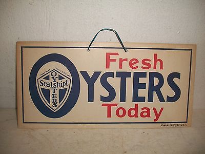 Vintage Sealshipt Oyster Sign Fresh Oysters Today 10 X 5" Cardboard Tin can