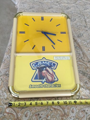Title (ebay affiliate link): 1991 Vintage Joe Camel R J Reynolds Plastic Battery Wall Clock Sign Works Good!