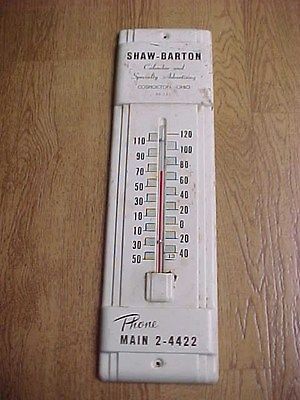 Title (ebay affiliate link): 1950s SHAW - BARTON ADVERTISING THERMOMETER COSHOCTON OHIO