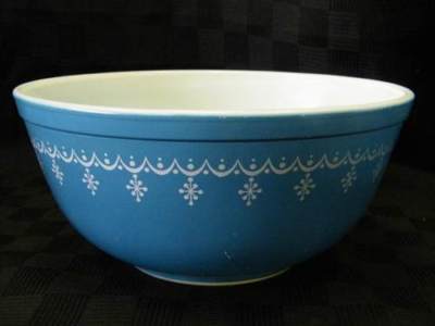 Large Old Pyrex Glass Snowflake Blue Mixing Bowl Milk