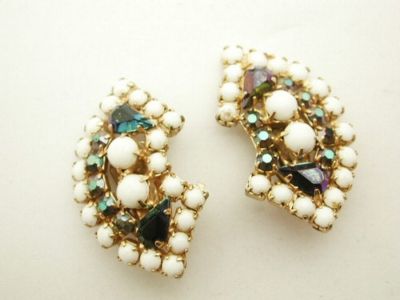 Vintage Milk Glass & AB Rhinestone & Glass Earrings