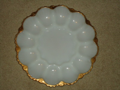 ANCHOR HOCKING~MILK GLASS~SHELL~10"~DEVILED EGG PLATE!!
