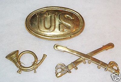 REPRODUCTION CIVIL WAR UNION BELT BUCKLE + INFANTRY & CAVALRY CAP BADGES