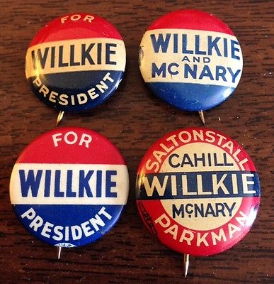 Title (ebay affiliate link): Lot of Four Wendell Willkie for President Campaign Pin Pinback Buttons