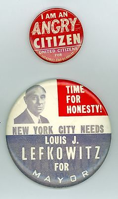 2 Vintage 1961 New York Mayor Louis Lefkowitz Political Pinback Buttons