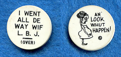 I WENT ALL DE WAY WIF LBJ Pregnant AFRICAN AMERICAN WOMAN * Anti-Johnson Token