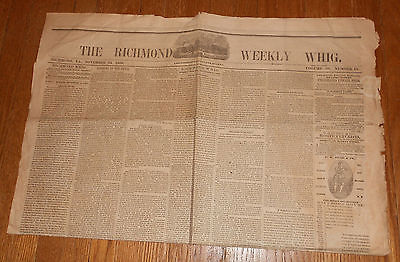 Title (ebay affiliate link): 1860 Antique Newspaper - Richmond Weekly Whig - Reactions to Lincoln Election