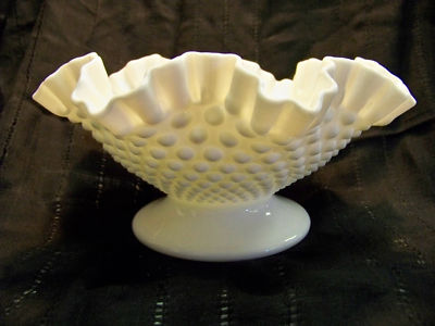 WHITE HOB NAIL FENTON MILK GLASS 10 INCH BOWL