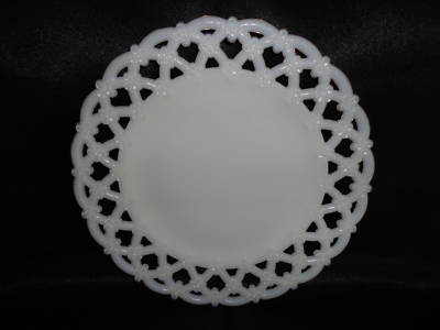 Vintage White Milk Glass Crocheted Rim Pedestal Plate