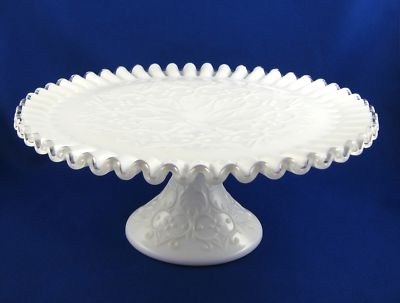 FENTON SPANISH LACE MILK GLASS PEDESTAL CAKE PLATE EC