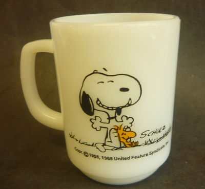 FIRE-KING SNOOPY WOODSTOCK COFFEE MUG milk glass peanut