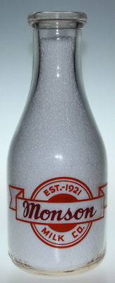Monson Milk Co. Glass One Quart Milk Bottle, MA, MINT