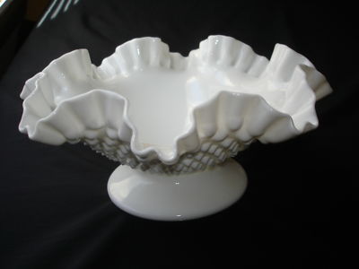 Fenton - Hobnail White Milk Glass large Ruffled Bowl