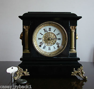 Title (ebay affiliate link): Antique Victorian American Seth Thomas Wooden Bell Chiming Mantel Clock c1880