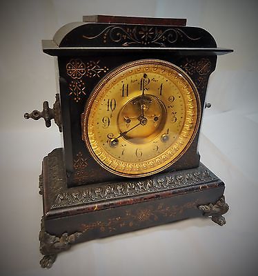 ANSONIA Clock Co HEAVY Black Desk Mantle Footed Clock Brass