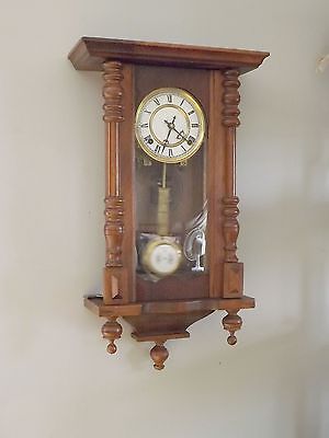 Vintage Mahogany Wall Clock with Shelf, Key & Pendulum