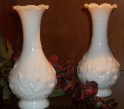 Imperial Glass Lot of 2 Vintage White Milk Glass Vases