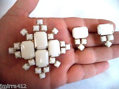 Title (ebay affiliate link): STUNNING VINTAGE GOLD TONE HIGH END MILK GLASS FLORAL BROOCH EARRING SET!!! 493C
