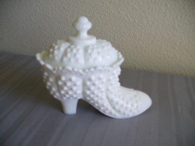 RARE Vintage FENTON HOBNAIL MILK GLASS SHOE with LID