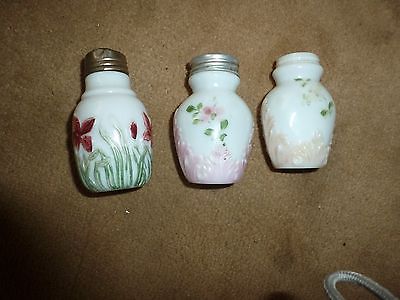 Victorian Era Salt & Pepper Shakers - 3 Hand Painted Milk Glass