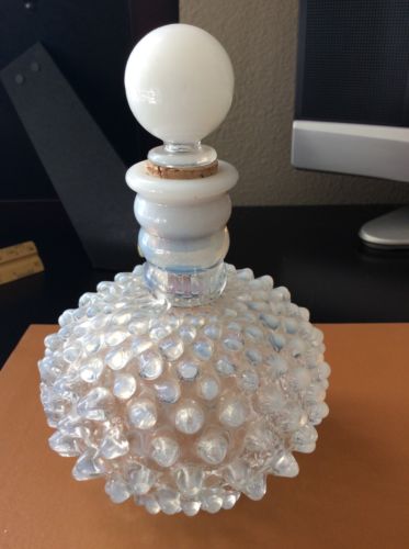 Milk Glass Hob Nail Bottle With Glass Stopper