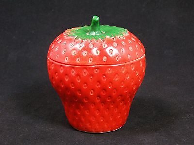 Vintage 1950's Hazel Altas Strawberry Milk Glass Jam Jar Painted Red 3.5"