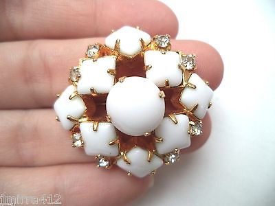 GORGEOUS VINTAGE ESTATE HIGH END MILK GLASS CABOCHON RHINESTONE BROOCH!!! 1311N