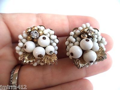 GORGEOUS VINTAGE ESTATE SIGNED JAPAN MILK GLASS BEADED CLIP EARRINGS!!! 1312S