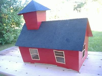 1950 Vintage 15" RED ONE (1) ROOM SCHOOL HOUSE Scale Scale Display Antique Bell