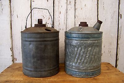 2 Antique Galvanized Metal Model T Era Gas Cans ~ Vintage Rustic Prim Decor