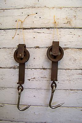 2 Old Vintage Meat Locker Pulley Hooks ~ Industrial Decor Butcher Shop Tools