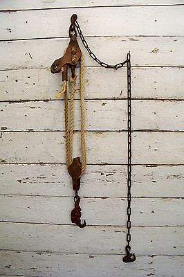 Antique / Old Vintage Rope Pulley / Barbed Wire Fence Stretching Tool Barn Decor
