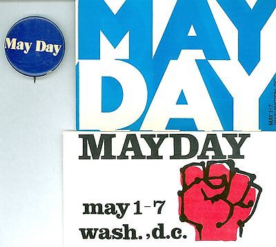 Vintage 1970s May Day Pinback & May Day Sticker & Window Card CPUSA