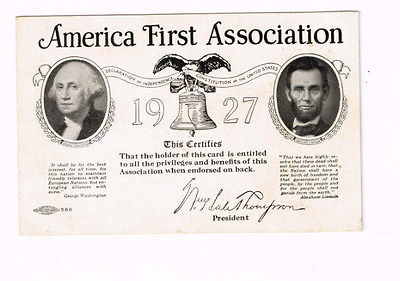 Title (ebay affiliate link): 1927 "America First Association" 4 1/2" membership card Washington Lincoln