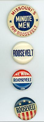 Title (ebay affiliate link): 4 Vintage 1940 President Franklin Roosevelt Political Pinback Buttons Minutemen