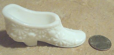 Miniature Opaque White Milk Glass Shoe Daisy and Button Pattern