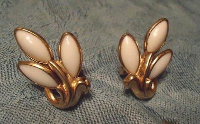 Title (ebay affiliate link): Vintage Crown Trifari White Milk Glass (TEAR DROP) Clip Earrings