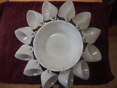 Vintage Milk Glass Punch Bowl with 12 Cups