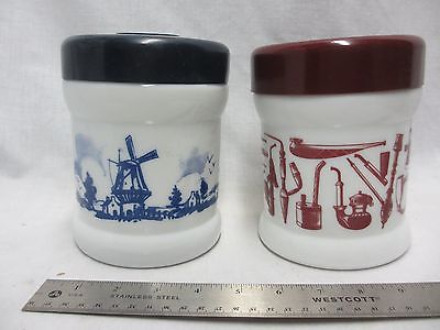 **Lot of 2** Milk Glass Pipe Tobacco Canister Windmill Peace Pipe - Tins Humidor