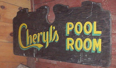 AWESOME BIG OLDWOODEN TRADE SIGN FROM POOL HALL SUPER LETTERING, PAINT NR