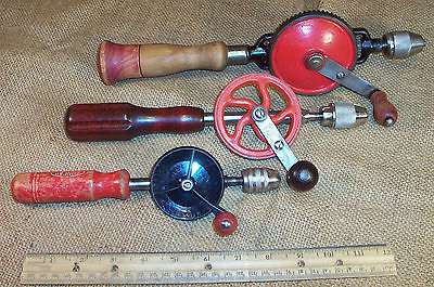 3 Old Hand Crank Drills Dunlap Antique Carpenter Farm Shop Woodworking Tools