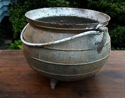 1800s Cast Iron Kettle Three Legs 3 Qt Hand Forged Bail Handle Gypsy Pot NR