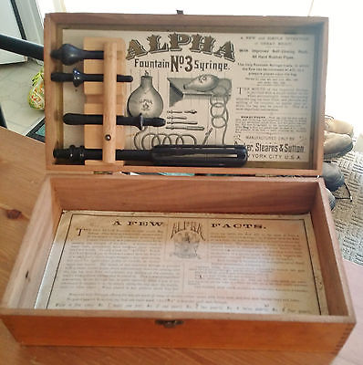 Title (ebay affiliate link): ANTIQUE ALPHA FOUNTAIN SYRINGE KIT WOODEN BOX AND TOOLS 1800'S MEDICAL KIT