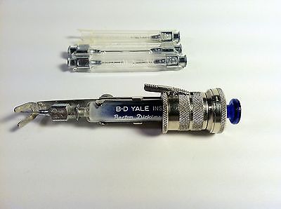 Vintage B-D BUSHER Auto Insulin syringe INJECTOR w Cobalt Blue Syringe X-191