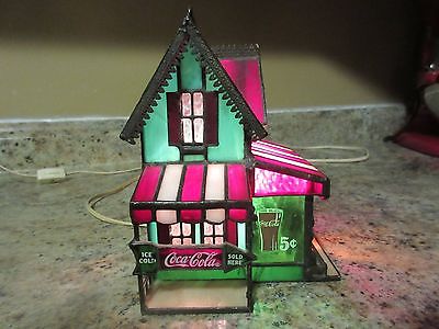 1995 Franklin Mint Coca-Cola Stained Glass Corner Store coke lights up stain